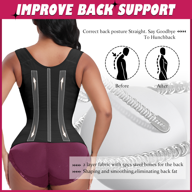 Multi-function adjustable waist cincher:This body shaper for women Equipped with an adjustable shoulder strap, along with 3 rows of delicate hanging buckles and zippers, allowing you to adjust it at will for different uses. Meanwhile, it can help you complete your upper body shape, tighten your body and create a beautiful self